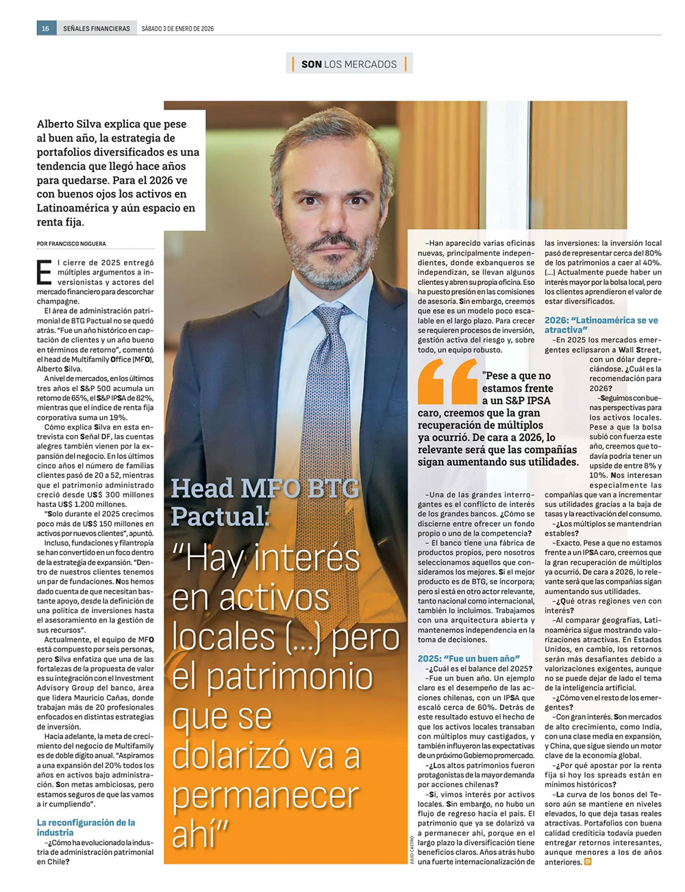 Alberto Silva explica que pese al buen año, la estrategia de portafolios diversificados es una tendencia que llegó hace años para quedarse. Para el 2026 ve con buenos ojos los activos en Latinoamérica y aún espacio en renta fija.